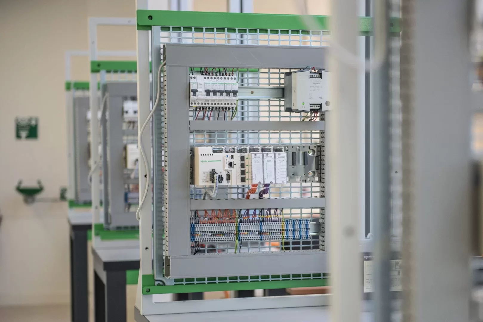 Les 3 ateliers sont équipés de matériel pédagogique à la pointe de la technologie. Ils disposent de maquettes didactiques et de systèmes adaptés aux sujets d’études et de pratique : TGBT pédagogique et mât d’éclairage, cellule habitat-tertiaire, atelier de câblage, panneaux photovoltaïques pédagogiques, automates, portique de levage automatisé.